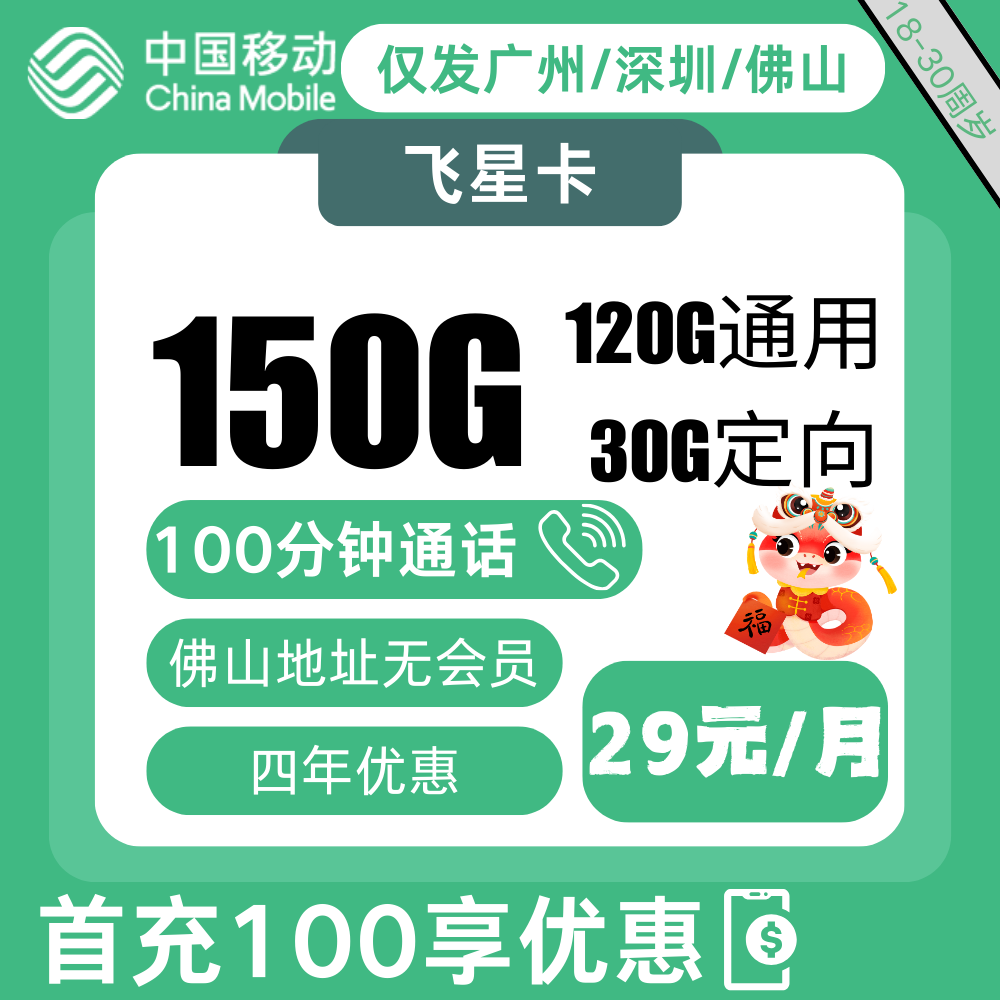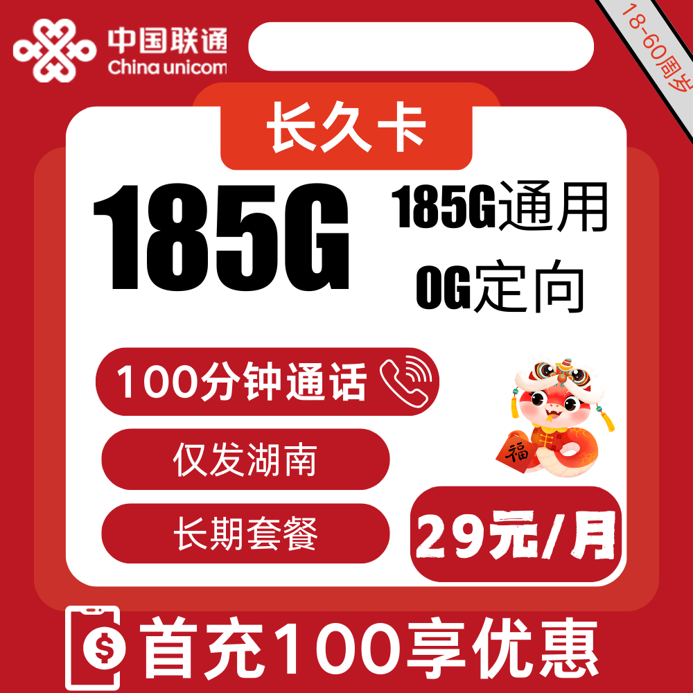 29元包185G通用+100分钟
