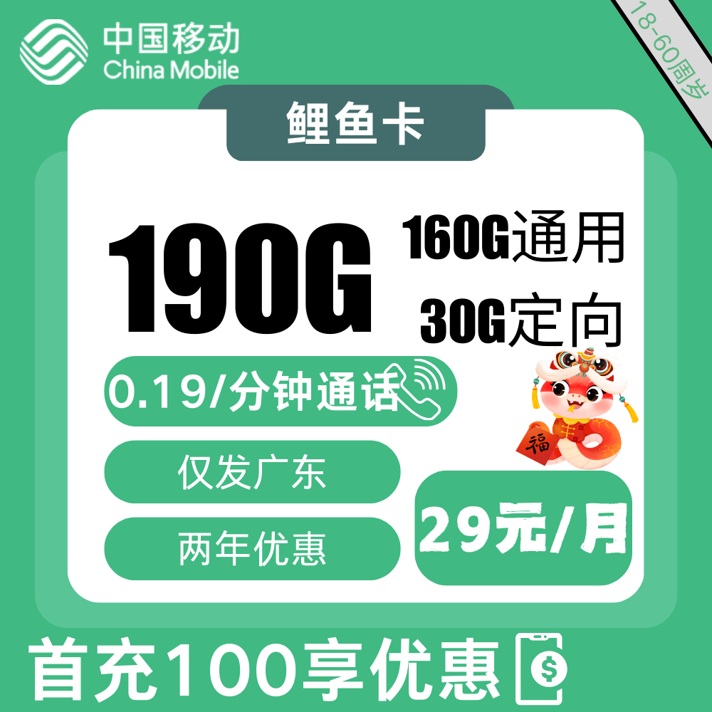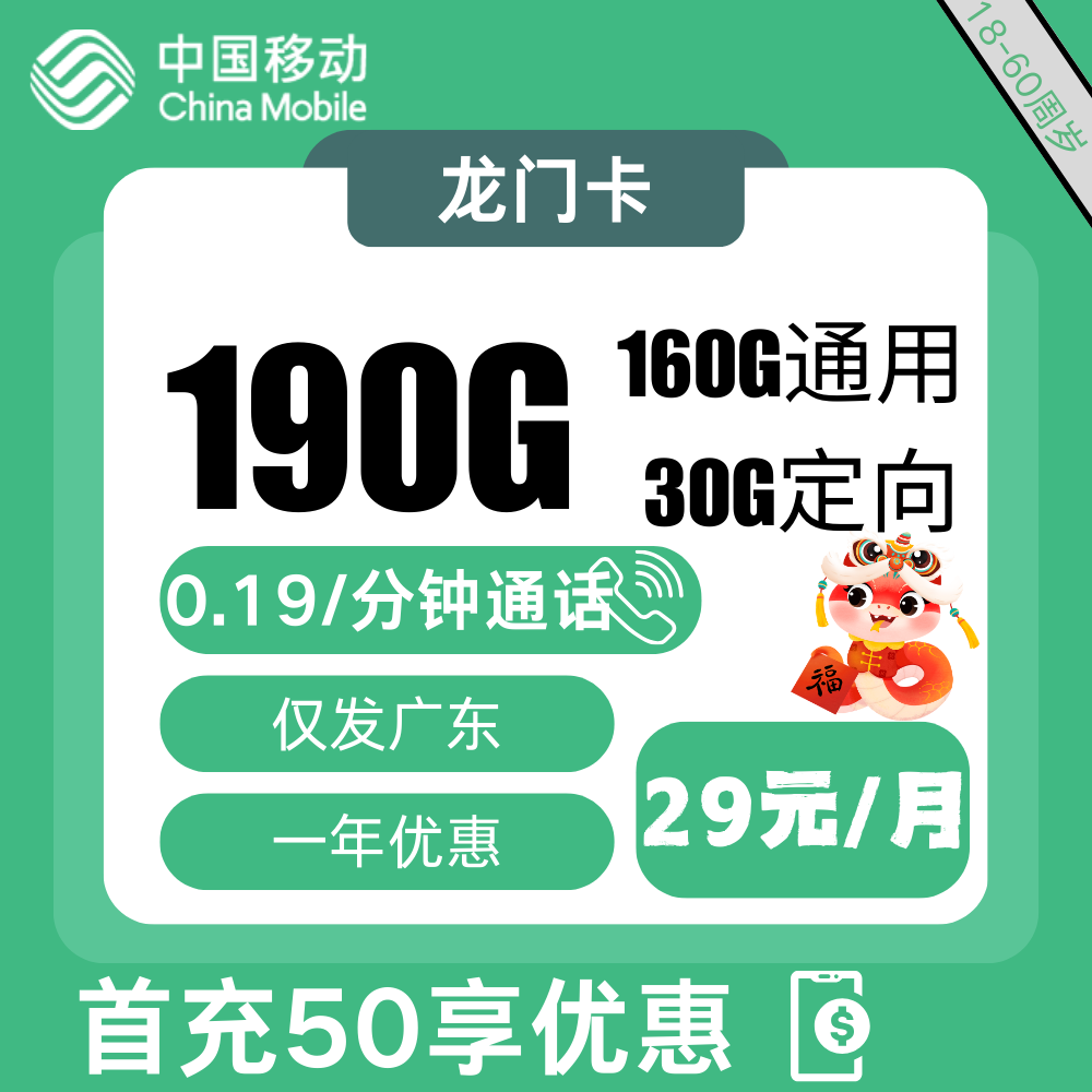 29元包190G通用+200分钟