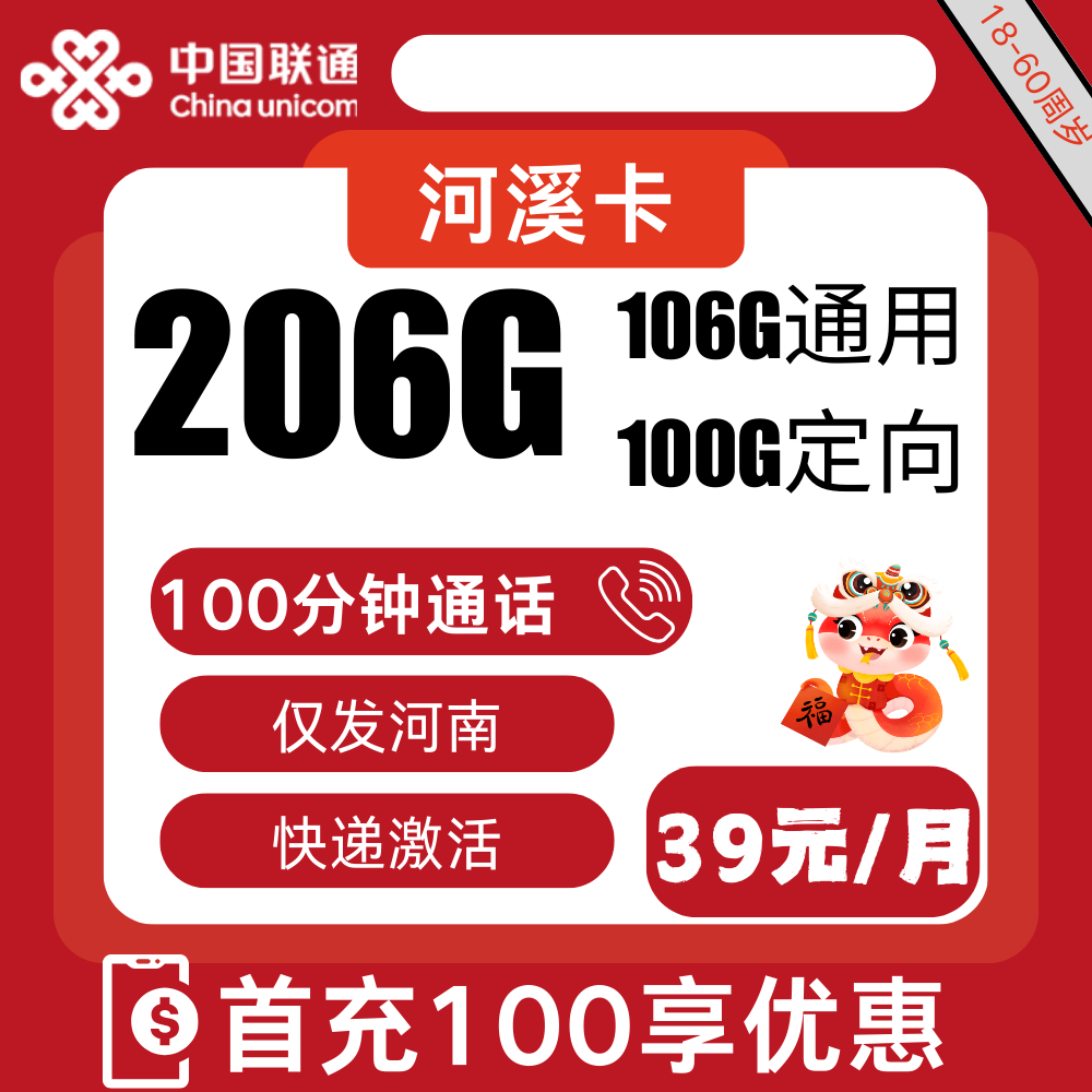 39元包106G通用+100G定向+100分钟