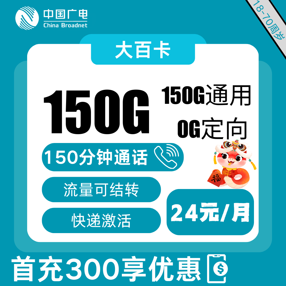 19元150G通用流量+300分钟通话