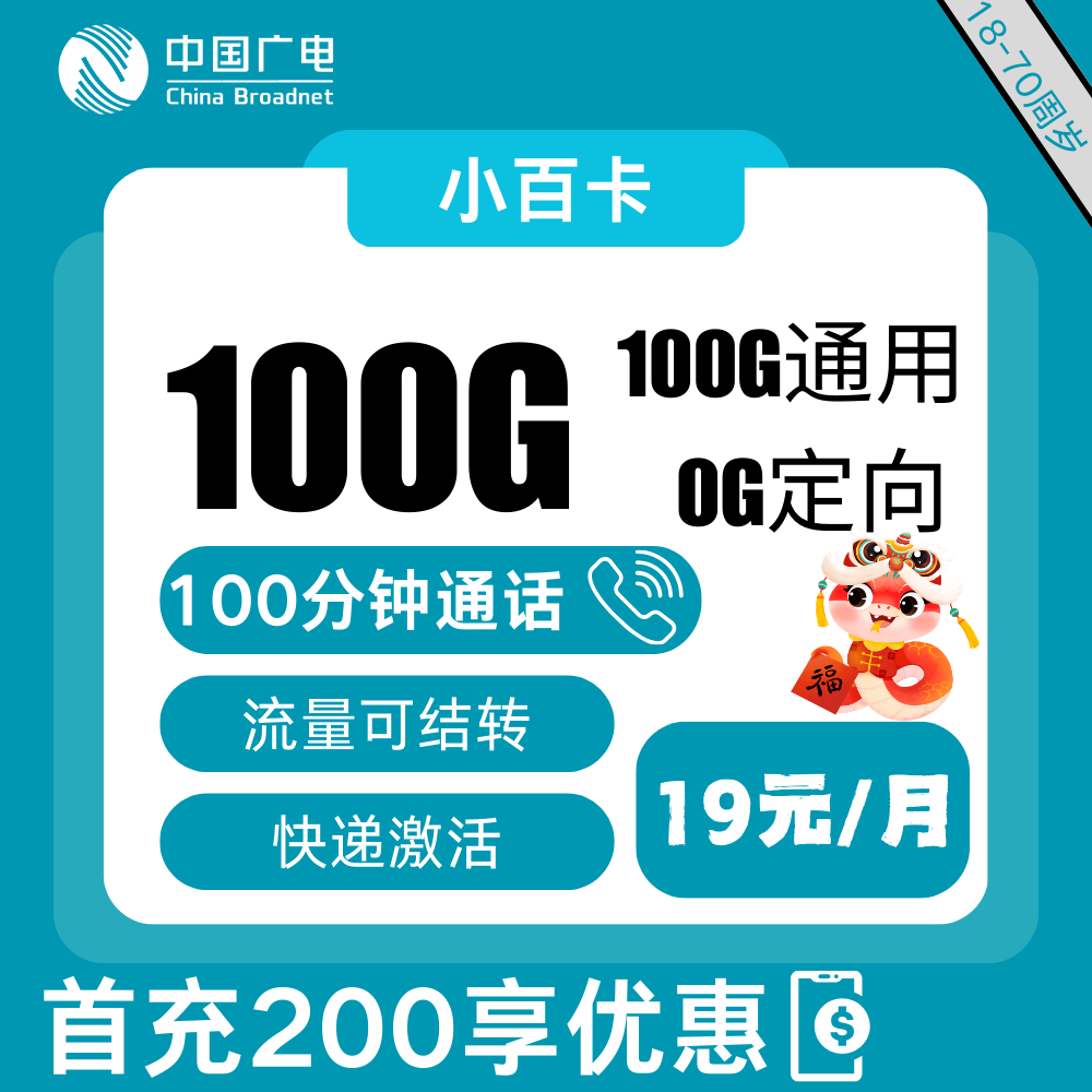 19元包50G通用+30G定向+100分钟
