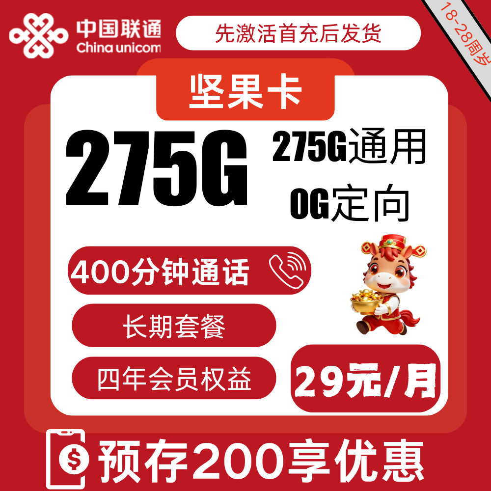29元275G+400分钟+权益N选1